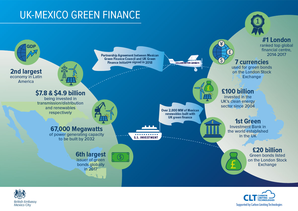 CLT worked with the British Embassy in Mexico to identify the UK’s green finance strengths, overlay them with Mexican investment opportunities, and pinpoint high-value commercial opportunities. We built a database of over 100 Green Finance stakeholders in both Mexico and the UK, carried out 32 interviews and reviewed over 80 literature sources. The work showed that the UK is among the world’s strongest and most mature jurisdictions for Green Finance. It blends consistent, multi-year policy support with unrivalled global leadership in financial services. This has produced a green finance ecosystem that is innovative and growing with a proven interest in new, international markets. Demand for Green Finance in Mexico is high. Mexico plans to build 67,000 megawatts of power capacity by 2032 whilst enhancing its electricity transmission and distribution networks. New green infrastructure projects that are currently being tendered amount to over US$16.8 billion. As the second largest economy in Latin America with the sixth-largest issuance of green bonds in 2017 and a recently liberalised energy market, the opportunities for investment in Mexico are strong. Our report summarises findings in an opportunities table that assesses each sector, its attractiveness to UK players, the financing / investing opportunities and the types of financial services that are accessible to UK firms. Overall, there is ongoing interest from UK investors and service providers in Mexican Green Finance, and significant near-term pipeline of commercial opportunities. The project was well-received by the Embassy: This is great, that’s exactly what we were looking for. Everything we were looking for, CLT has included in this report. It’s really good that you were able to provide profiles of companies and contact details, and matching them with Mexican opportunities. That’s exactly what we were looking for and we are really grateful for all the hard work that we’re seeing in this report. – Hector Cabrera, Financial Services and Open Data Programme and Policy Officer, British Embassy in Mexico City On the commercial side, we are very satisfied with what you included. Thank you for adding in the commercial examples, it’s good to see some we’ve engaged with, but nice to see some new ones too. – Gabriela Rodriguez Herrera, Head of Climate and Energy Policy, British Embassy in Mexico City